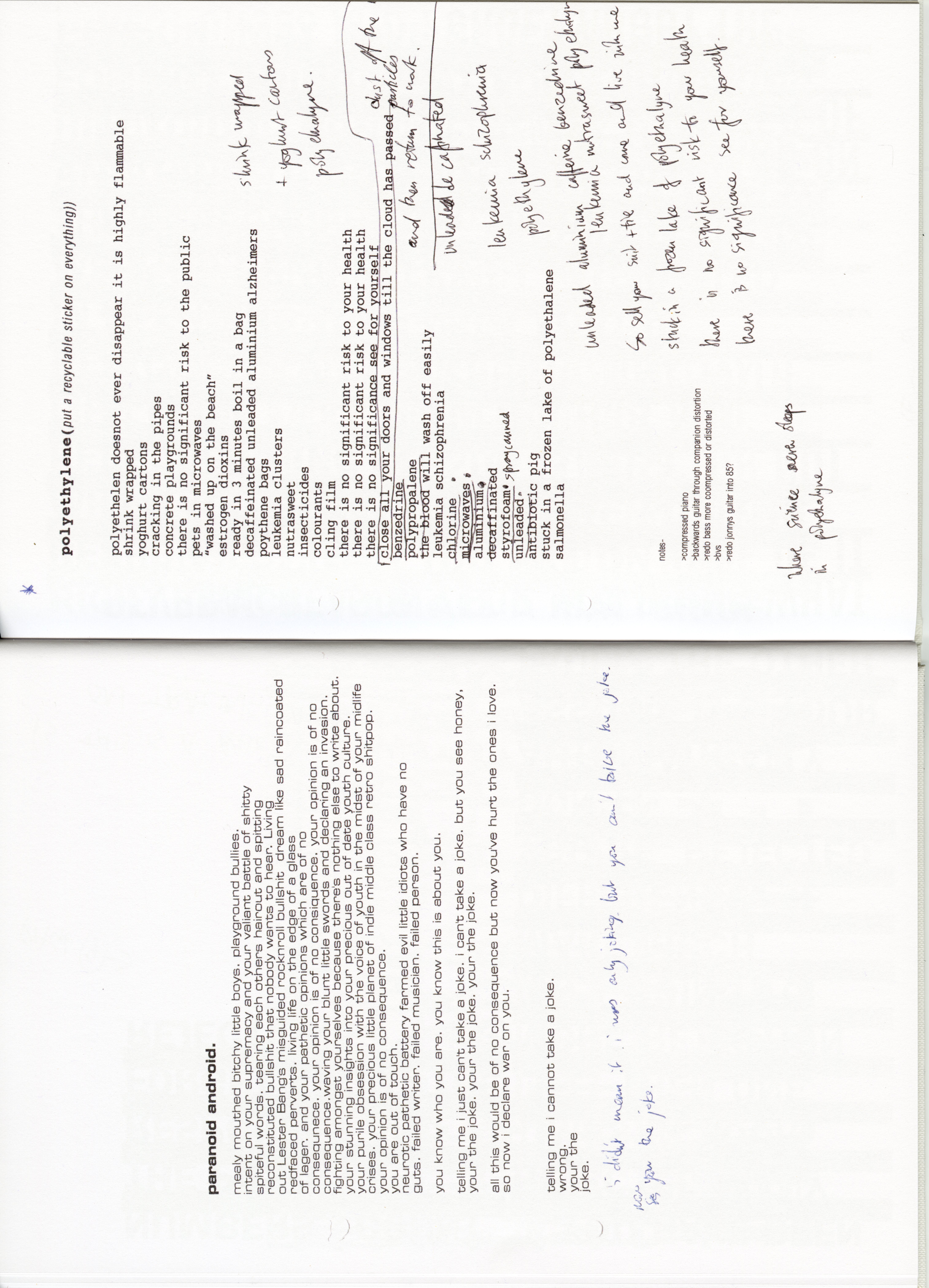 paranoid android* get busy with the shakers while im fast asleep could you stop the noise im trying ta get some rest this the place it wont hurt ever again
