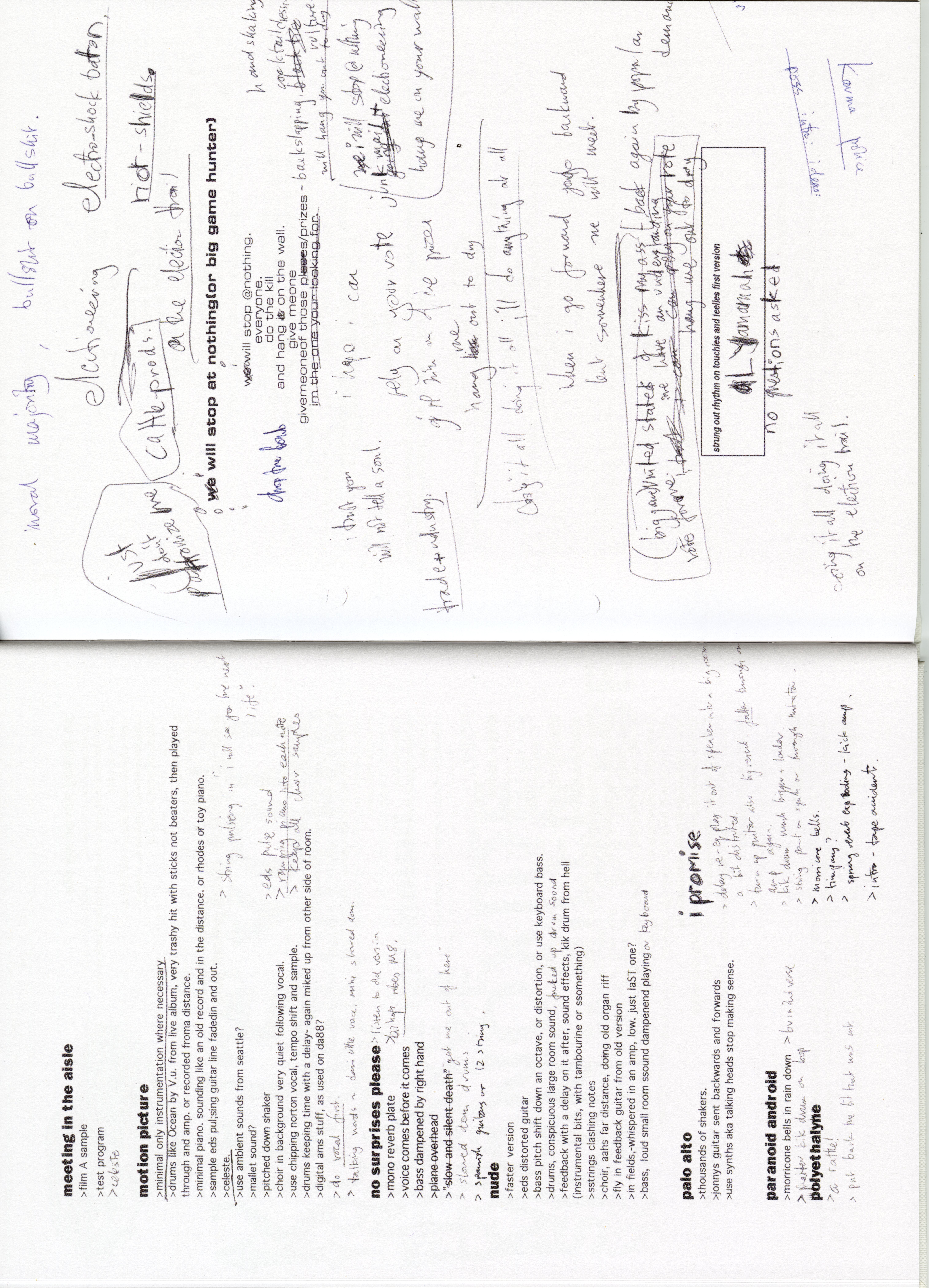 karma police* girl with hitler hairdo everybodys friend life in a glasshouse phew for a minute there i lost myself i lost myself sit down your safe now