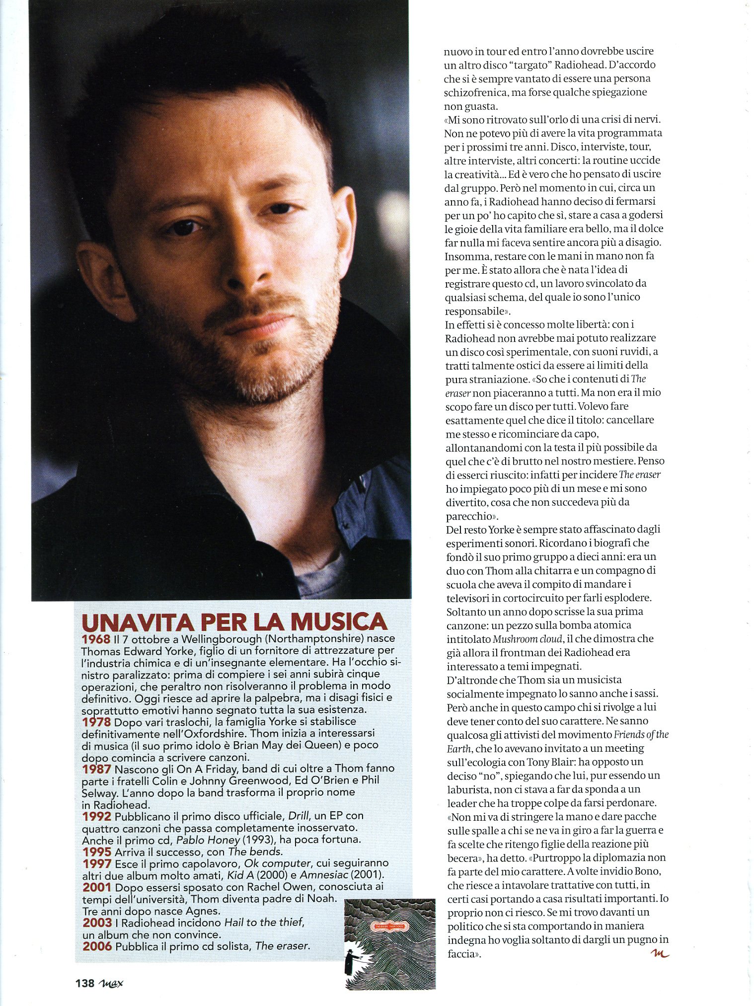 Era sull'orlo di una crisi di nervi, voleva lasciare i Radiohead. Poi ci ha ripensato. Sara, intanto esce il suo primo cd da solo.