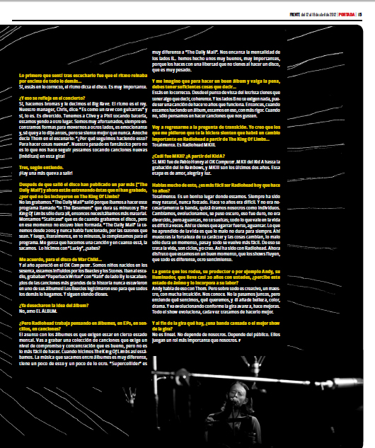 Ed: Es un álbum de sentimientos, comparado con In Rainbows que era un disco muy directo, de canciones. Nigel [Goodrich, su productor] anduvo mucho de DJ entonces trajo algo de ese mundo al disco…