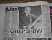 IN the corner of this wretched party for the beautiful people hands a photograph of Thom Yorke, pointing an accusing finger around the room; he’s hunched, he’s the turning worm. Onstage stand the real Thom Yorke, casting an accusing eye around this perfumed hell; he’s erect, he’s the biting snake.