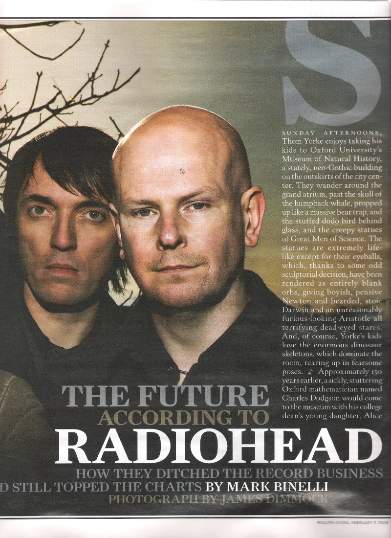 "If I die tomorrow, I'll be happy that we didn't carry on working within this huge industry that I don't feel any connection with," he continues. "But the idea wasn't to make a big, significant statement. I mean, we knew it would be messing with things a little bit. But we just wanted to get the album to people who'd been waiting patiently for four years. I really thought it would be a splash in a little pond, and I was surprised at how much the media picked up on it." Adds Greenwood, "Unlike a lot of Radiohead stuff, this idea really was boredom-driven. Just about avoiding the old."