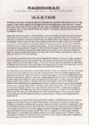 Right! After the summer jaunts to various festivals, it was back to heads down and some serious studying at the Royal Academy of Rock, as we released ‘My Iron Lung’ on September 26th. Our first release for some time, it reached 24 in the charts, and we have sold 30,000 copies to date. Thanks to you who bought it, and thanks to those of you who came to see us jump up and down on stage, (except me), on the UK tour. It was our first headline tour since May 1993 and a fab time was had by all. Of course, no WASTE newsletter would be without the traditional ‘Phil Selway - who he?’ anecdote, and this tour’s corker was said drummer being mistaken in Glasgow for Thom’s personal bodyguard. The whole band made a bid for anonymity at the Sheffield gig when the smoke-machine got stuck, and a thick white fog enveloped the stage. Our lighting designer Andi Watson, who has worked with The Mission and Sisters of Mercy, was obviously having a bit of a Goth flashback.