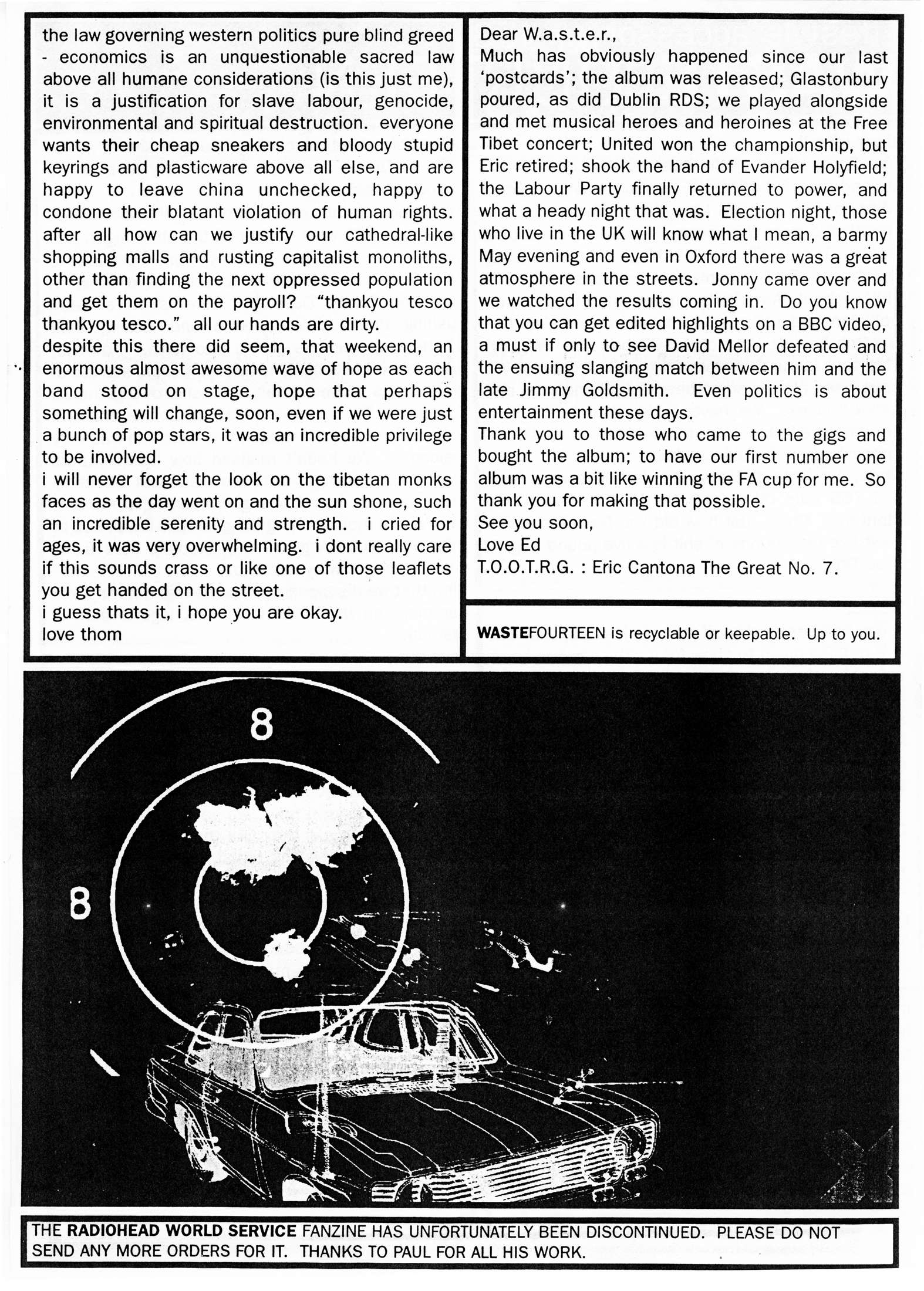 THE RADIOHEAD WORLD SERVICE FANZINE HAS UNFORTUNATELY BEEN DISCONTINUED. PLEASE DO NOT SEND ANY MORE ORDERS FOR IT. THANKS TO PAUL FOR ALL HIS WORK.