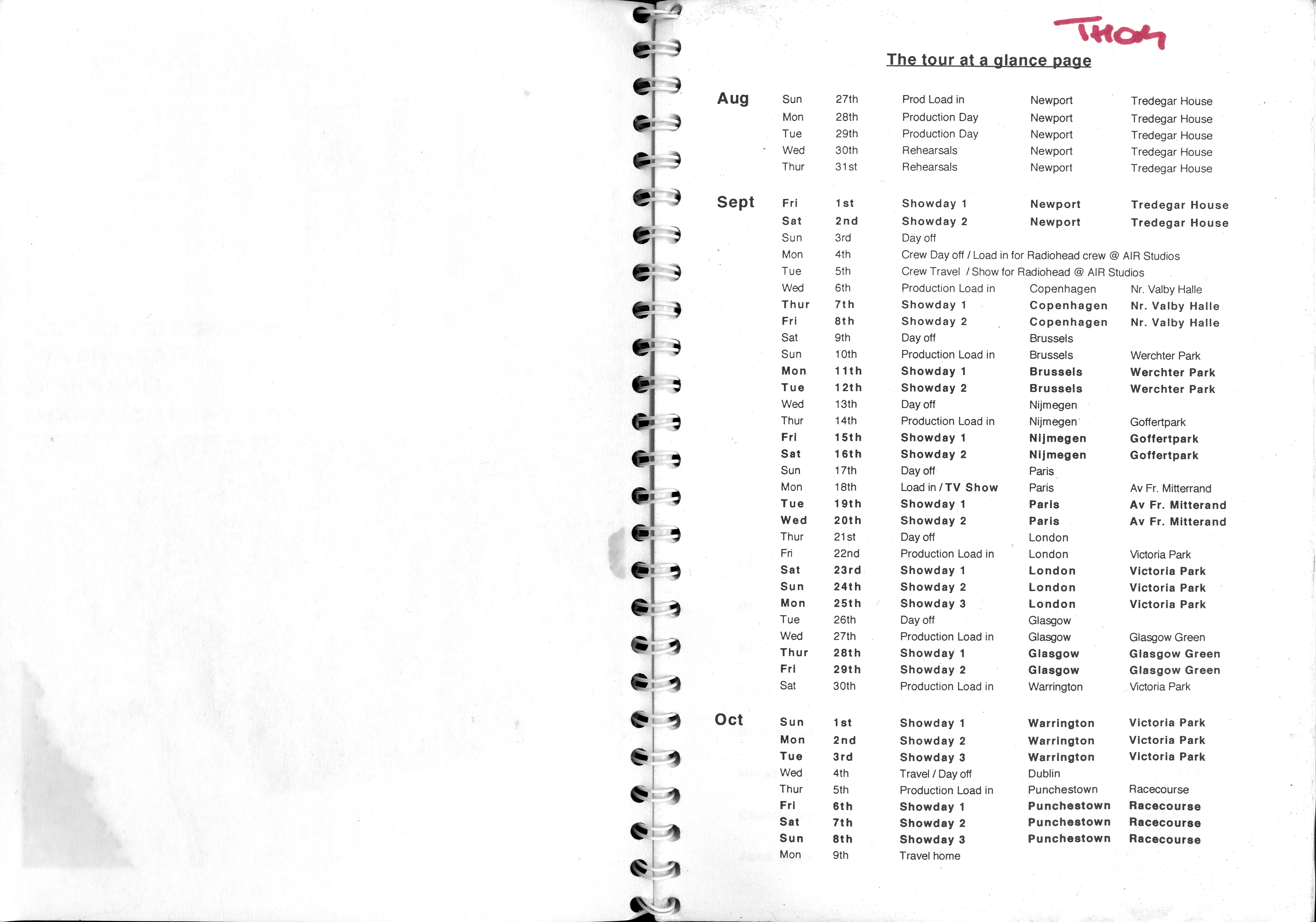 | Date (= Link) | Venue | City | Country | Notes | |||