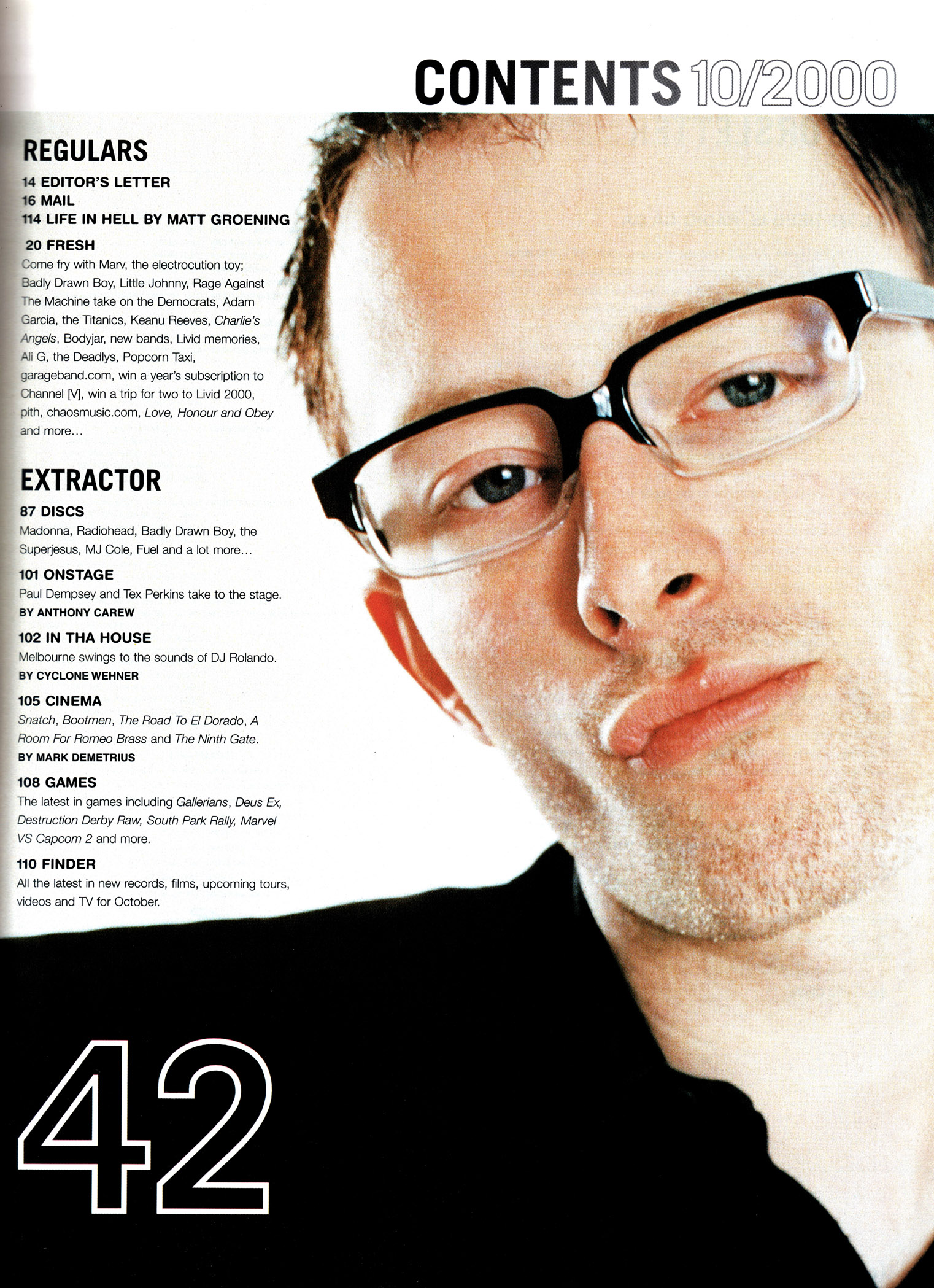 Radiohead don't much care for the promotional hoopla that goes with releasing a record. In an attempt to distance their music from the more commercial aspects of showbusiness there will be no video clips or singles from their new album, Kid A, for example. And main man Thom Yorke has agreed to only three interviews. Luckily for us, and you, one of those was with JUICE writer Lauren Zoric.