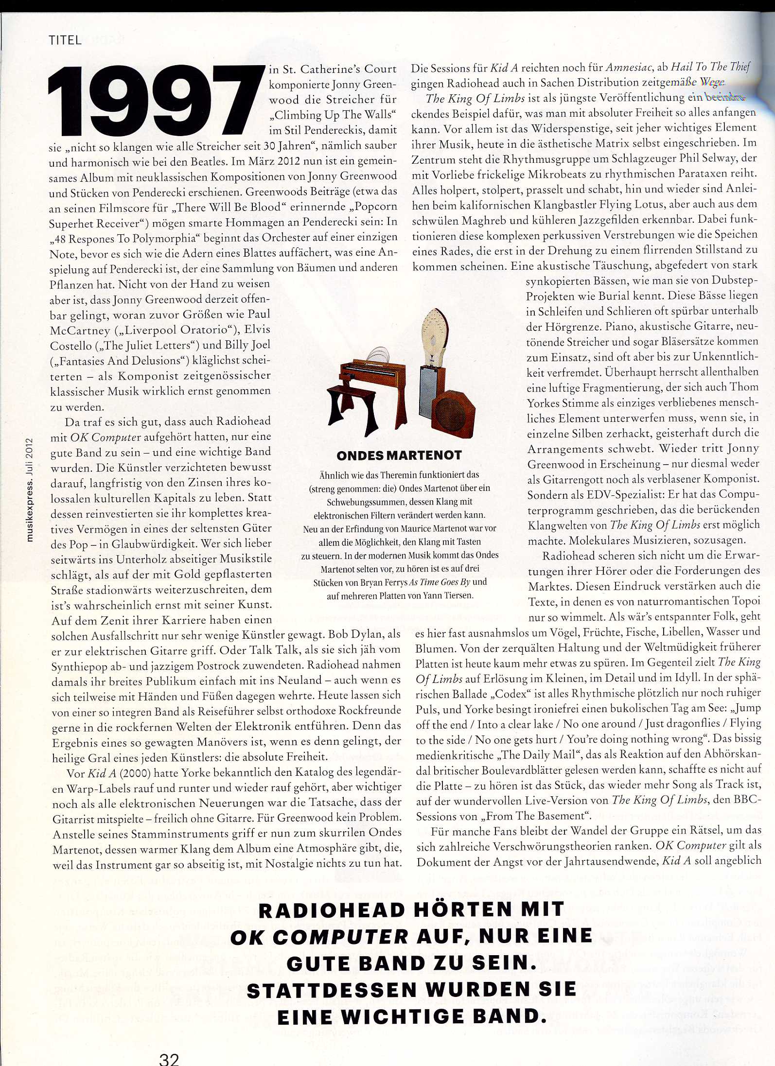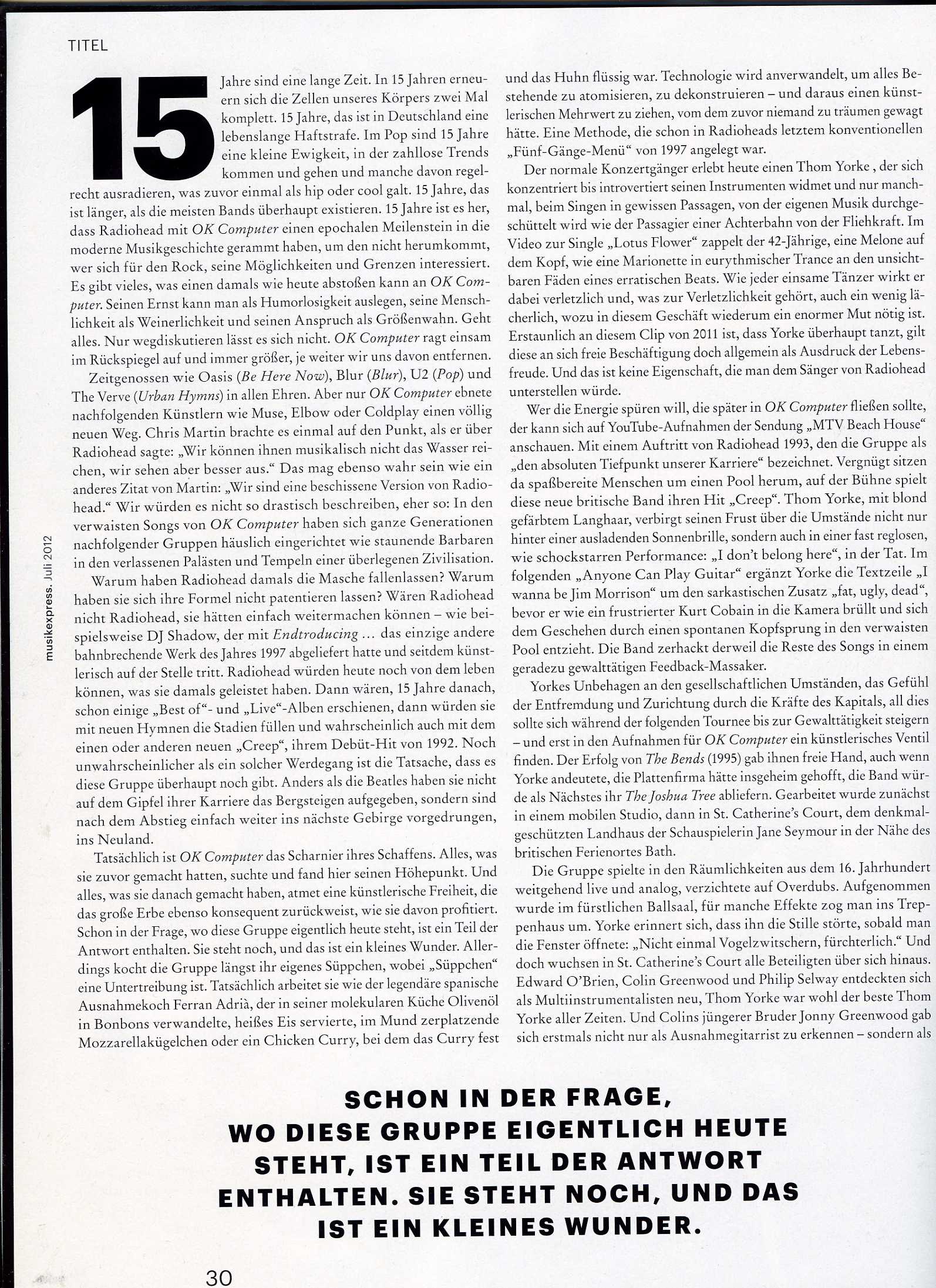 Radiohead prägten die Popmusik der Vergangenen Jahre wie kaum eine andere Band. Jetzt wird ihre wichtigste Platte OK Computer 15 Jahre alt. Eine würdigung - und zwölf Neuinterpretationen ihrer songs durch Austra, Diagrams und Andere.