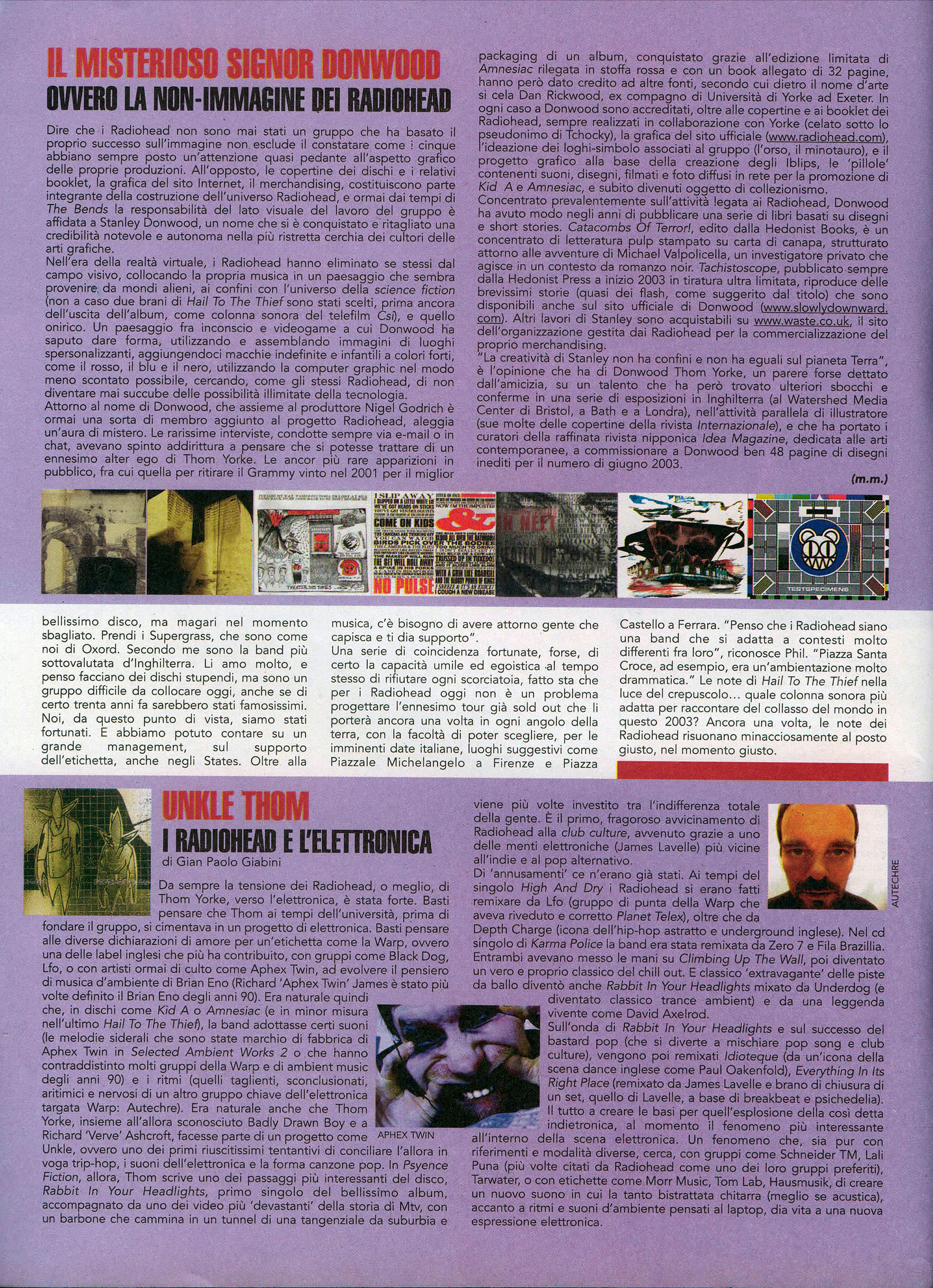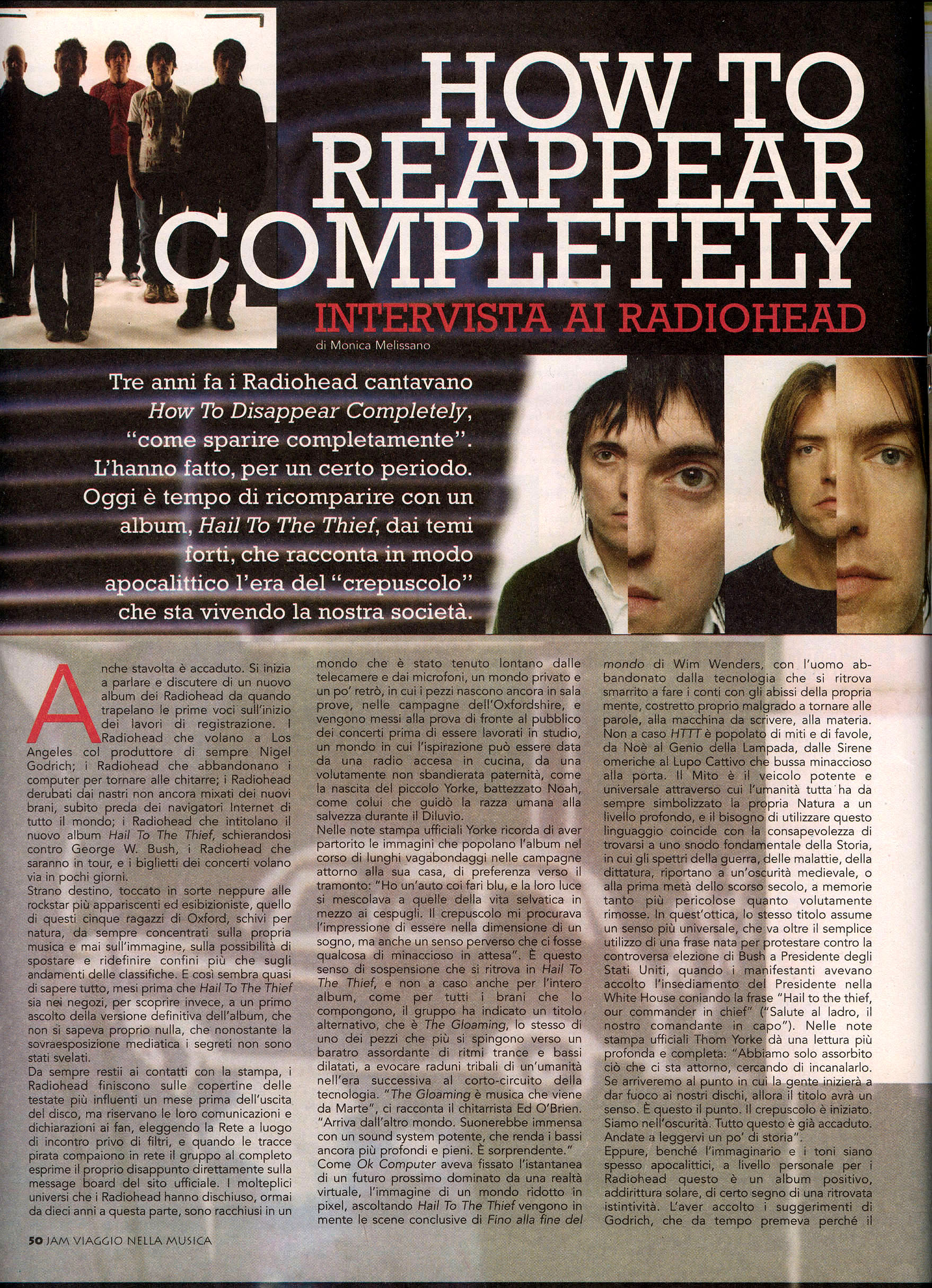 Tre anni fa i Radiohead cantavano How To Disappear Completely, “come sparire completamente”. L’hanno fatto, per un certo periodo. Oggi è tempo di ricomparire con un album, Hail To The Thief, dai temi forti, che racconta in modo apocalittico l’era del “crepuscolo” che sta vivendo la nostra società.
