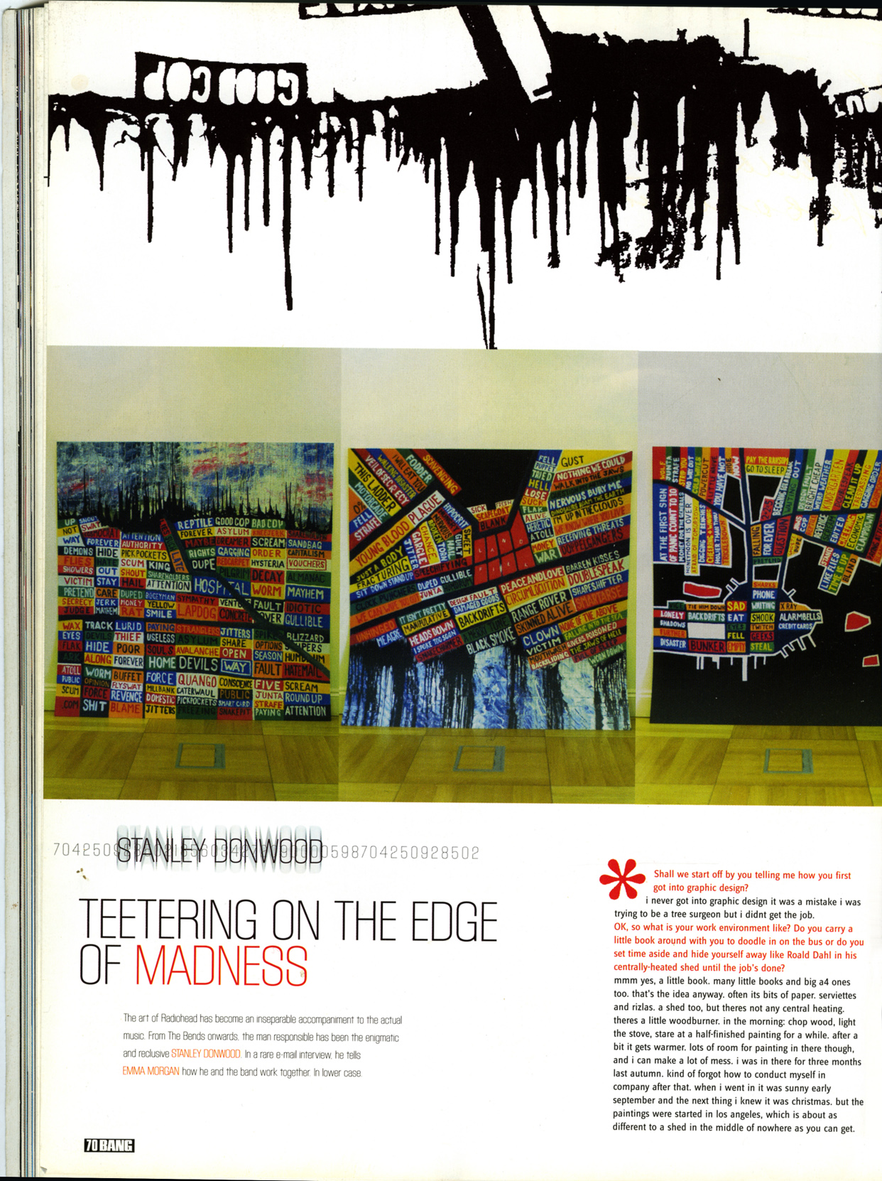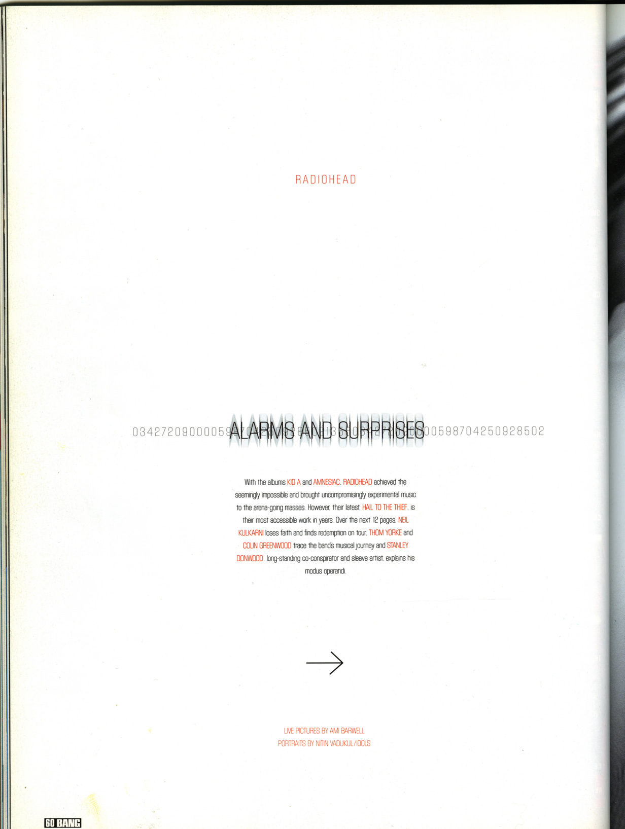 With the albums KID A and AMNESIAC, RADIOHEAD achieved the seemingly impossible and brought uncompromisingly experimental music to the arena-going masses. However, their latest, HAIL TO THE THIEF, is their most accessible work in years. Over the next 12 pages, NEIL KULKARNI loses faith and finds redemption on tour. THOM YORKE and COLIN GREENWOOD trace the bands musical journey and STANLEY DONWOOD, long-standing co-conspirator and sleeve artist, explains his modus operandi.