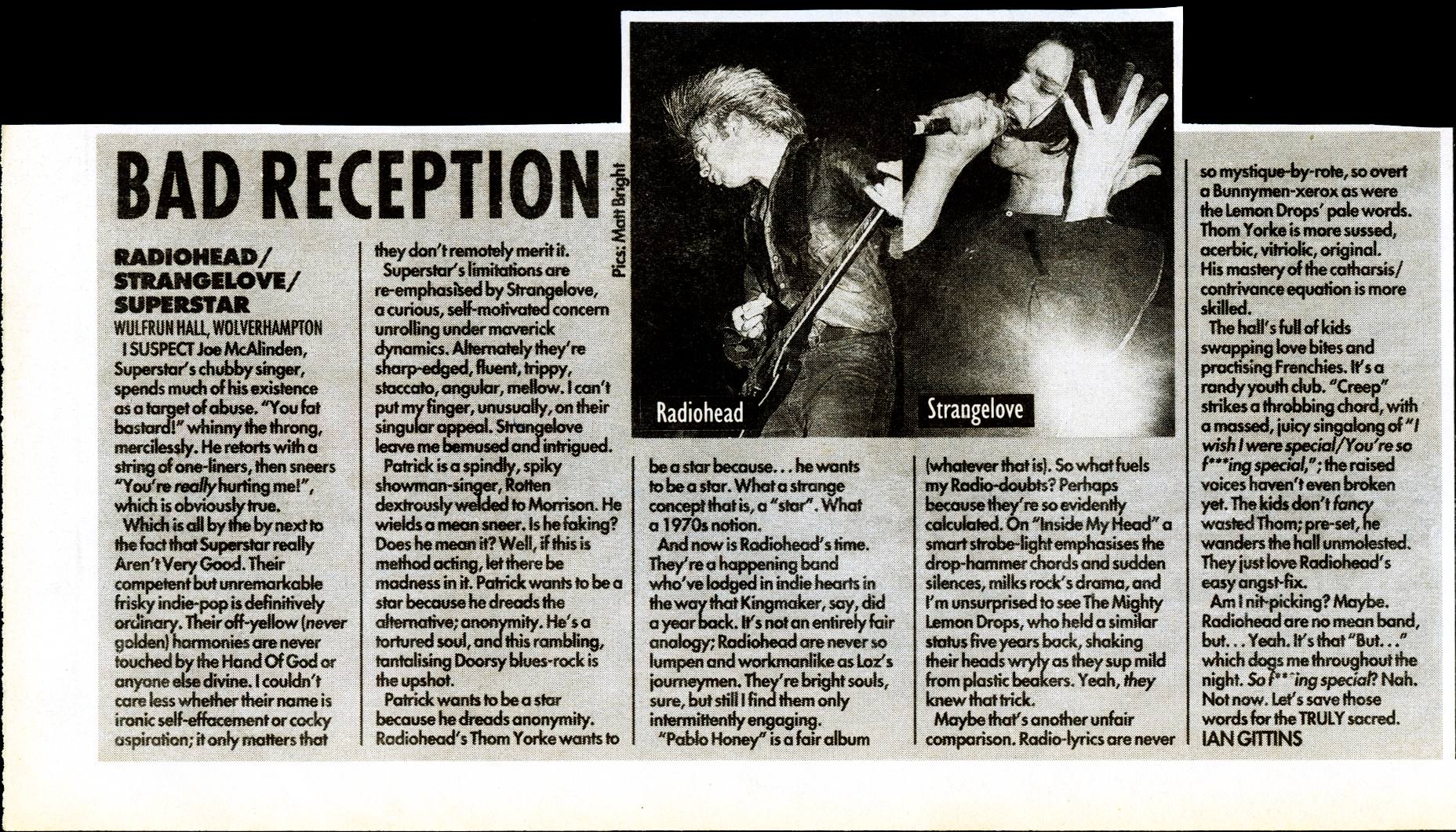 Like the young Julian Cope before him, Thom Yorke is a very British star. Despite the grand claims he makes both for his band and their superiority to most of the current opposition (he cites Polly Harvey and The Auteurs as Britain's only potential pop saviours), a lot of the time you get the impression that he feels unable to justify the "star" aspect of his role in the band; that, just like the song, he knows he's "a creep" and "a weirdo".
