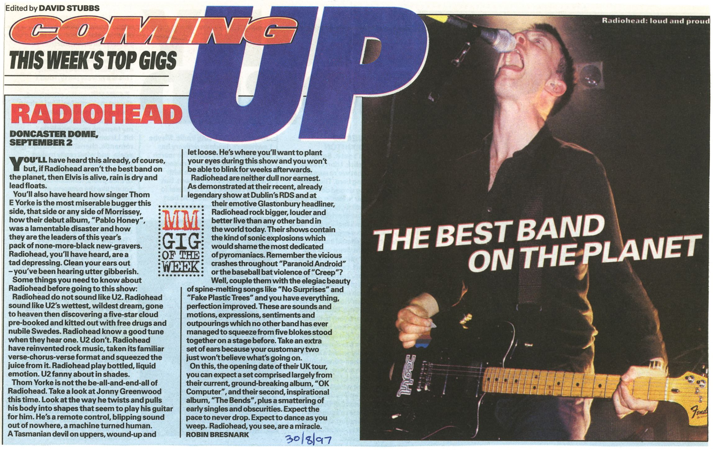 YOU'LL have heard this already, of course, but, if Radiohead aren't the best band on the planet, then Elvis is alive, rain is dry and lead floats.