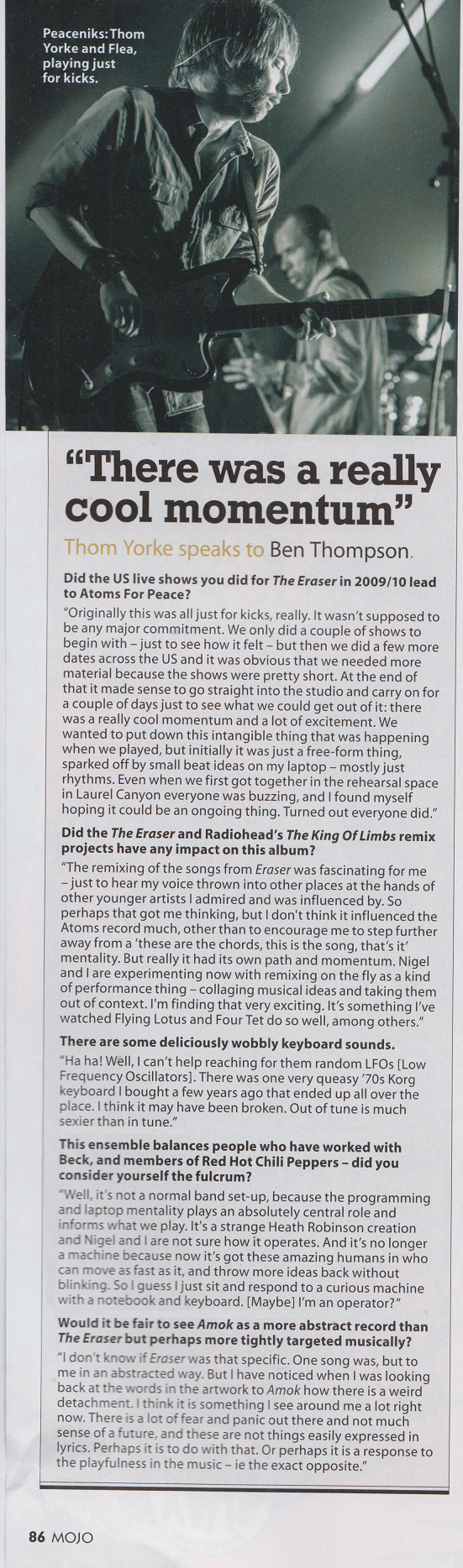Did the US live shows you did for The Eraser in 2009/10 lead to Atoms For Peace?