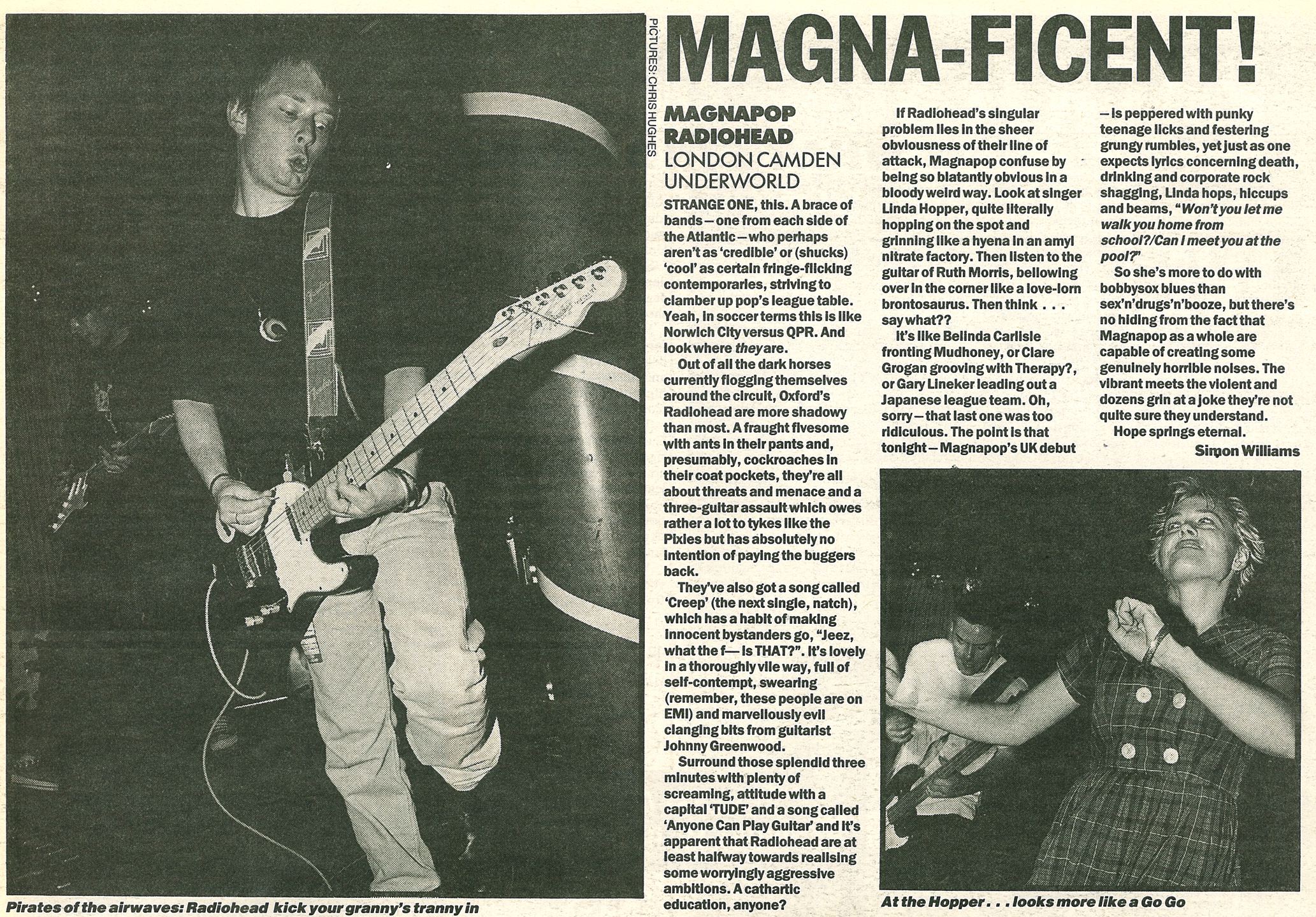 Out of all the dark horses currently flogging themselves around the circuit, Oxford's Radiohead are more shadowy than most. A fraught fivesome with ants in their pants and, presumably, cockroaches in their coat pokers, they're all about threats and menace and a three-guitar assault which owes rather a lot to tykes like the Pixies but has absolutely no intention of paying the buggers back.