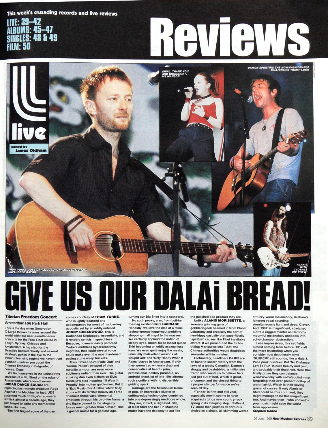 Garbage, Urban Dance Squad, Joe Strummer, Ben Harper, Luscious Jackson and Alanis Morissette also played the show which was headlined by Blur.