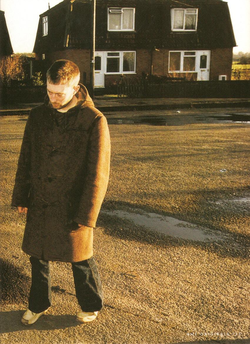 It's been a mess, all this, for years. It's been personal, bitter and childish (as is "our" wont), NME's dismissal of early Radiohead as "lily-livered" and "miserable", even through The Bends, photographs captioned with the words "ugly ugly ugly", the band eschewed over the glamorous posturing of Suede, a five-year-long Mexican stand-off over coverage, worsening the more "important" Radiohead became. But that's all over now. Perched on the seat in the concrete courtyard, Thom Yorke's flung off his fluorescent orange camping-chic cagoule and wears an ancient, plain grey T-shirt, jeans, and fawn shoes in the shape of a parallelogram. Scratching at several days' beard growth, he's wearing his shades; big, angular, frame-less, burgundy-tint, spook-shaped numbers and you come, eventually, to realise absolutely everything about Thom Yorke is a funny shape. He can swing from profound amusement to profound offence in the space of the same sentence and owns a huge, nasal laugh - broken teeth everywhere - made from sarcasm itself. A tiny, edgy person, he's so far beyond edgy to actually be The Edge. The other Edge. The real Edge. So, comparable only to Morrissey coming back from the "dead", Thom's ready to have his say. Like... why?