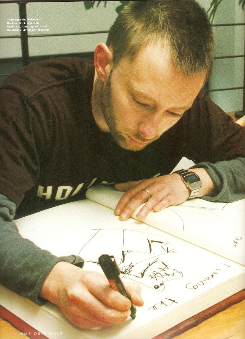 Today, of course, he might tell you all of the above is "bollocks". But middle-class white guilt doesn't explain a thing. Thom jokes about it because it's the perennial rock'n'roll "class" cliché bar none. He's heard it all before; how Radiohead are world-class hypocrites from Hades because they're now millionaires and still signed to EMI, the schmindie-mentality bogey-man from 1843. We've more multi-millionaires in music today than ever before, and everywhere else for that matter, and few give the world's ills a second's contemplation. Very very few truly Give A Shit.