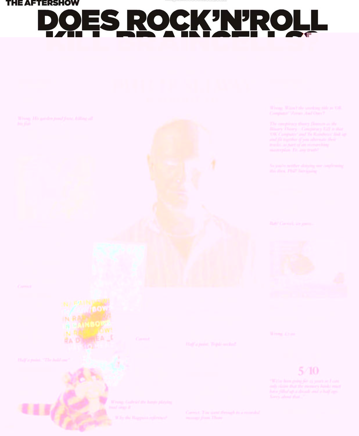 The conspiracy theory [known as the Binary Theory — Conspiracy Ed] is that ‘OK Computer' and ‘In Rainbows' link up and fit together if you alternate their tracks, as part of an overarching masterplan. Err, any truth?