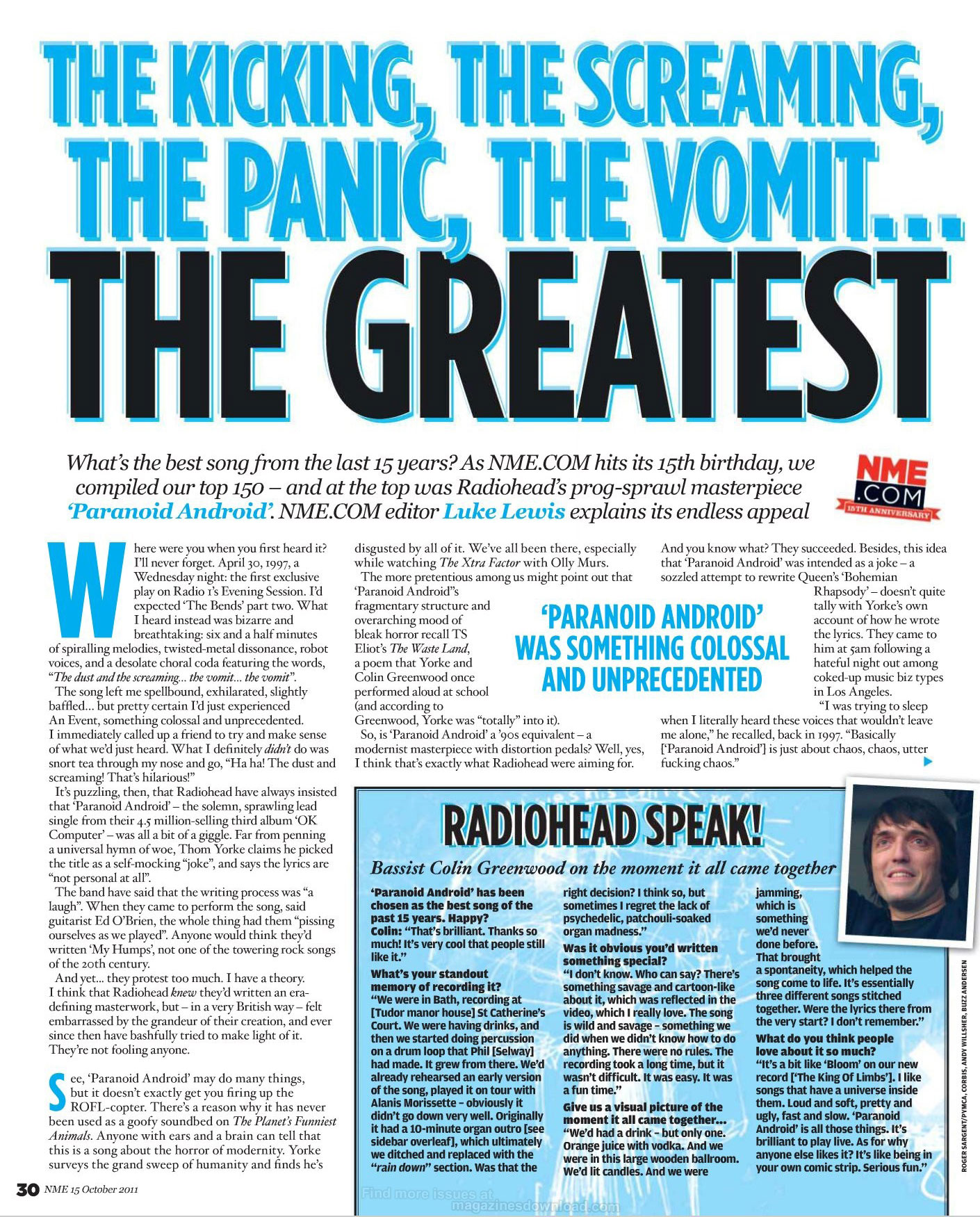 What's the best song from the last 15 years? As NME.COM hits its 15th birthday, we compiled our top 150 - and at the top was Radiohead's prog-sprawl masterpiece 'Paranoid Android'. NME.COM editor Luke Lewis explains its endless appeal.