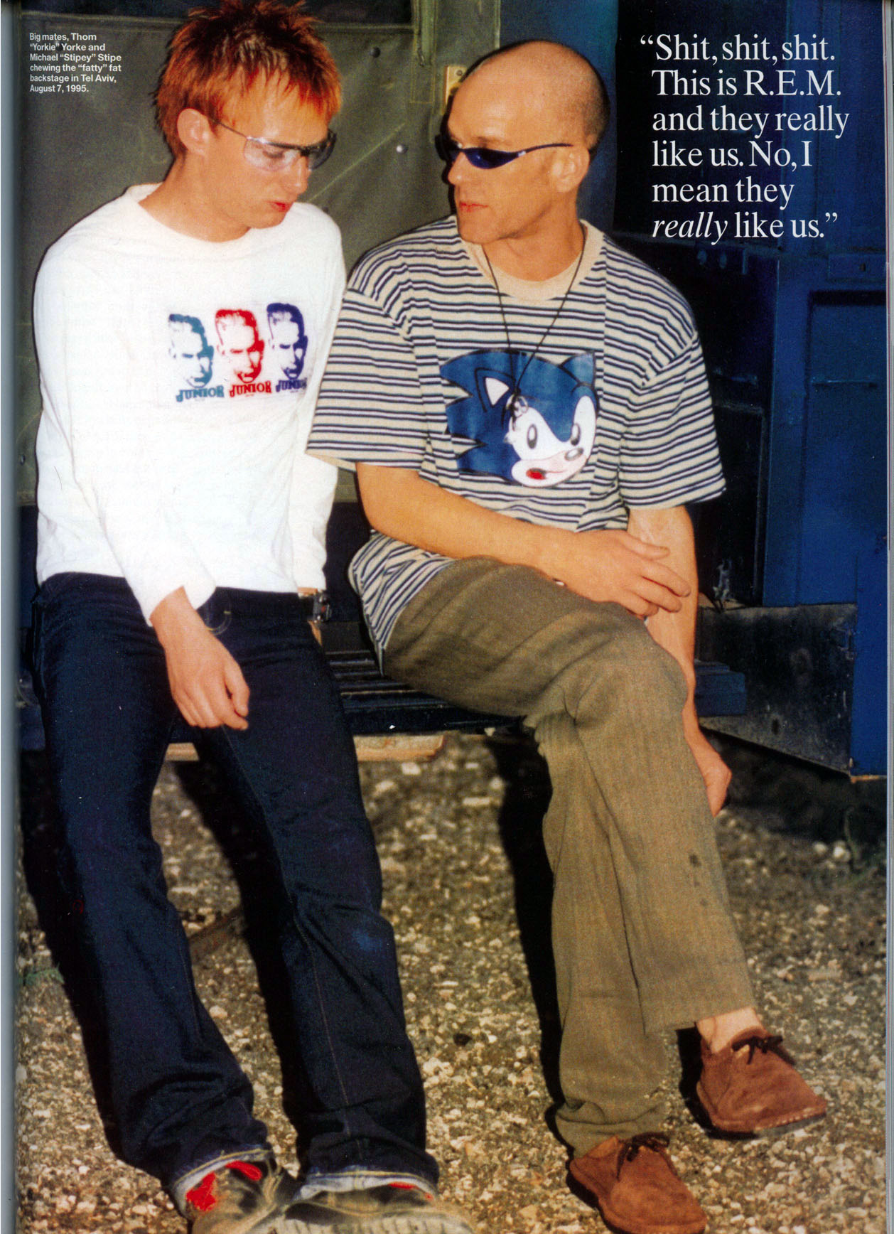 I'm just completely hyper in the presence of all this. Find myself gurgling like a baby who is being tickled. Kick an apple around the floodlit garden until I can string a sentence together again. Feel 50 feet tall. Shit, shit, shit. This is R.E.M. and they really like us. No, I mean they REALLY like us. They're not just being nice. When someone you really admire gives you something like that, your shoulders get a little lighter, you feel a little stronger. Forever.