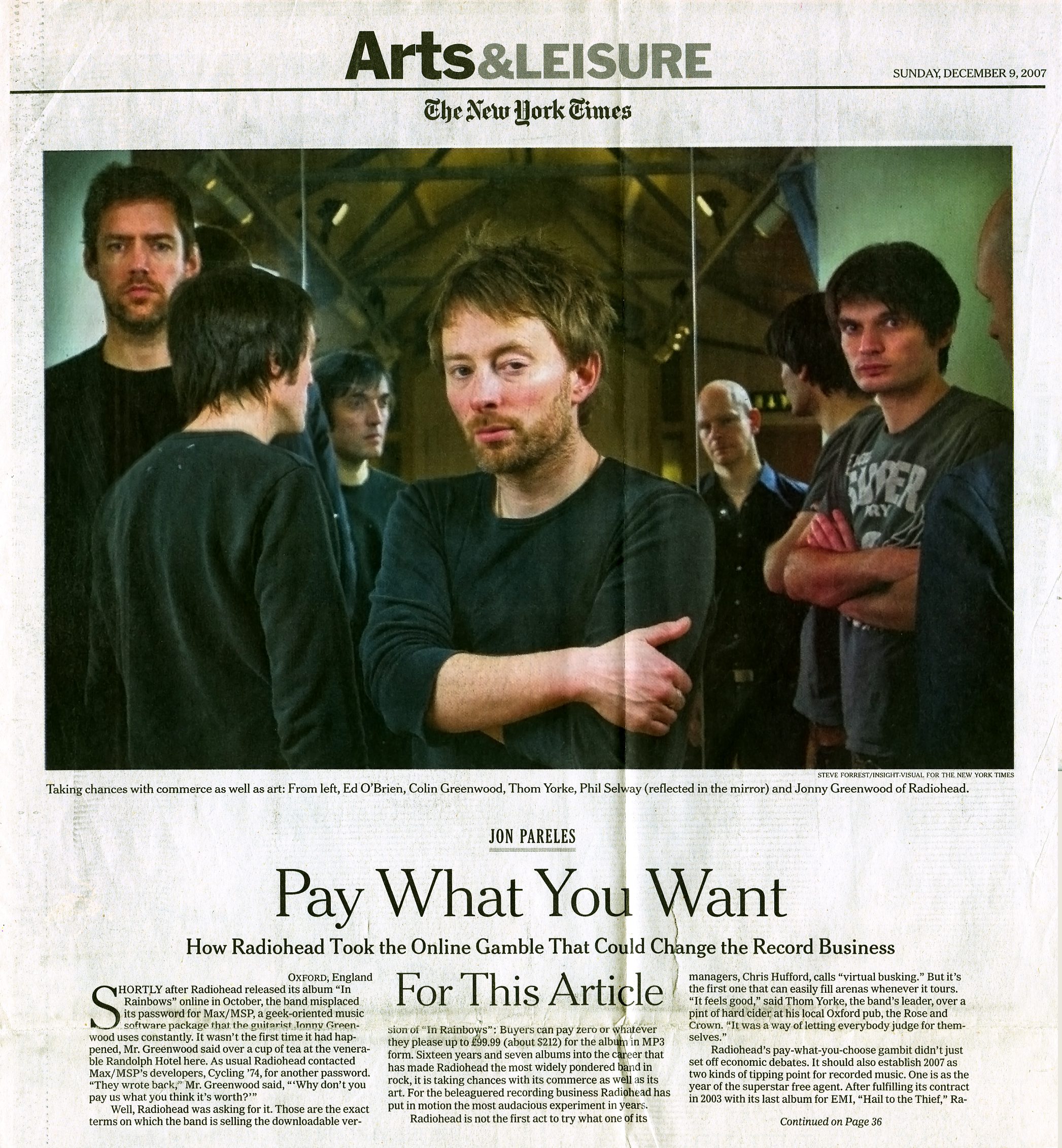 Radiohead’s pay-what-you-choose gambit didn’t just set off economic debates. It should also establish 2007 as two kinds of tipping point for recorded music. One is as the year of the superstar free agent. After fulfilling its contract in 2003 with its last album for EMI, “Hail to the Thief,” Radiohead turned down multimillion-dollar offers for a new major-label deal, preferring to stay independent.