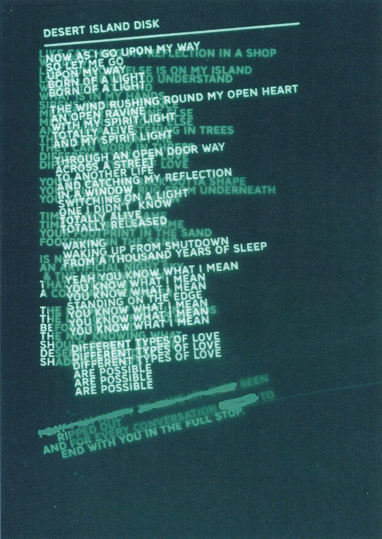 | Desert Island Disk [19] | 30 | 01 | 03 | 05 | 08 | 09 | 11 | 14 | 17 | 18 | 21 | 06 | 07 | 09 | 14 | 16 | 18 | 20 | 02 | |||||||||