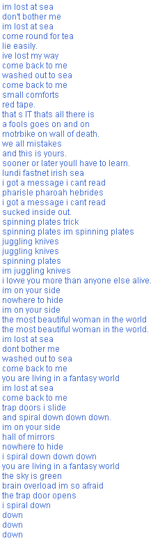 the sky is green brain overload im so afraid the trap door opens i spiral down down down