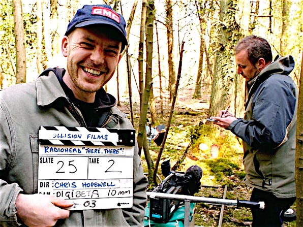 Chris Hopewell is in the middle of directing the video for "There There,"" the first single off of Radiohead's new album, Hail to the Thief, and his knees are sore. Hopewell's been down on his hands and knees, scattering moss around the set of the shoot – a shoot he will only describe, at this early phase of production, as being loosely modeled after a Grimm’s fairy tale. But Hopewell downplays his own discomfort, instead commending Thom Yorke, Radiohead's infamously intense frontman, for his dedication and good spirits. Again, Hopewell won't say much about what, exactly, Yorke has been forced to do not surprisingly, perhaps, given the album’s early leak to the public via online file-sharing - except that it's a kind of human animation that's extraordinarily labor-intensive and not particularly easy.