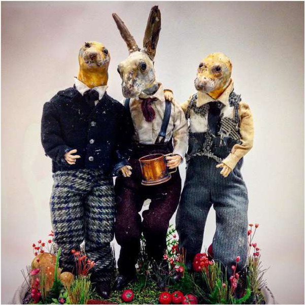 This scene, as well as the other scenes featuring the taxidermy animals - where heavily inspired by the bizarre creations of Victorian oddball Mr Potter. He stuffed a whole bunch of kittens to make a “Kitten Wedding”. We used toy ones dressed up. The other animals were real taxidermy on hire.