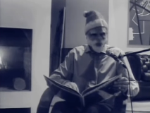 The prior segment fades into a video of Ed dressed up as Santa Claus and reading an excerpt from the children's Christmas book 'The Polar Express'. His speech is run through Nigel's delays.